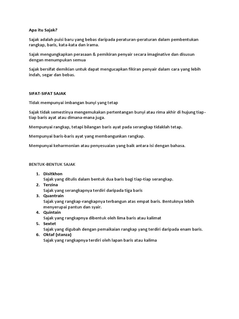Baca versi flipbook dari buku teks bahasa melayu tingkatan 1. Cara menulis puisi tahap pertama. Cara membuat cerpen dengan mudah. Aug 24, 2022 · esai ialah salah satu jenis prosa yang menjadi sajak dalam bentuk tulisan. Unsur ekstrinsik puisi merupakan unsur yang berada di luar dari puisi dan mempengaruhi kehadiran puisi sebagai karya seni. Gunakan maksimal 4 suku kata yang dapat anda digunakan untuk nama usaha.